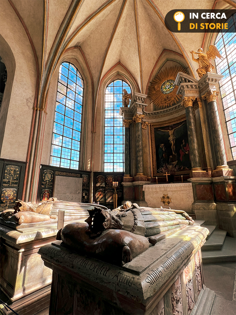 Incuriosito proprio dalla torre di vedetta che svetta sulla città non ci ho pensato due volte a visitarla. Non sapevo che fosse aperta solo d’estate e sono stato fortunato nel poter ammirare dall’interno questa abbazia. Perché vi invito a visitarla? Per l’atmosfera che si respira al suo interno. Forse proprio a causa della sua natura di pantheon dei regnanti svedesi sembra che il tempo si sia fermato. La parte più suggestiva è senza dubbio il presbiterio. Il silenzio unito alla luce che penetra dalle vetrate crea un’atmosfera surreale. Guardate le sculture dei due re medievali e avrete come l’impressione di osservare due uomini che riposano per davvero. Entrambi i monumenti furono scolpiti dall’olandese Lucas van der Werdt tra il 1574 e il 1576 ed originariamente erano dipinti con colori chiari. Dopo circa 450 anni queste sculture hanno ancora un effetto potente sui visitatori.