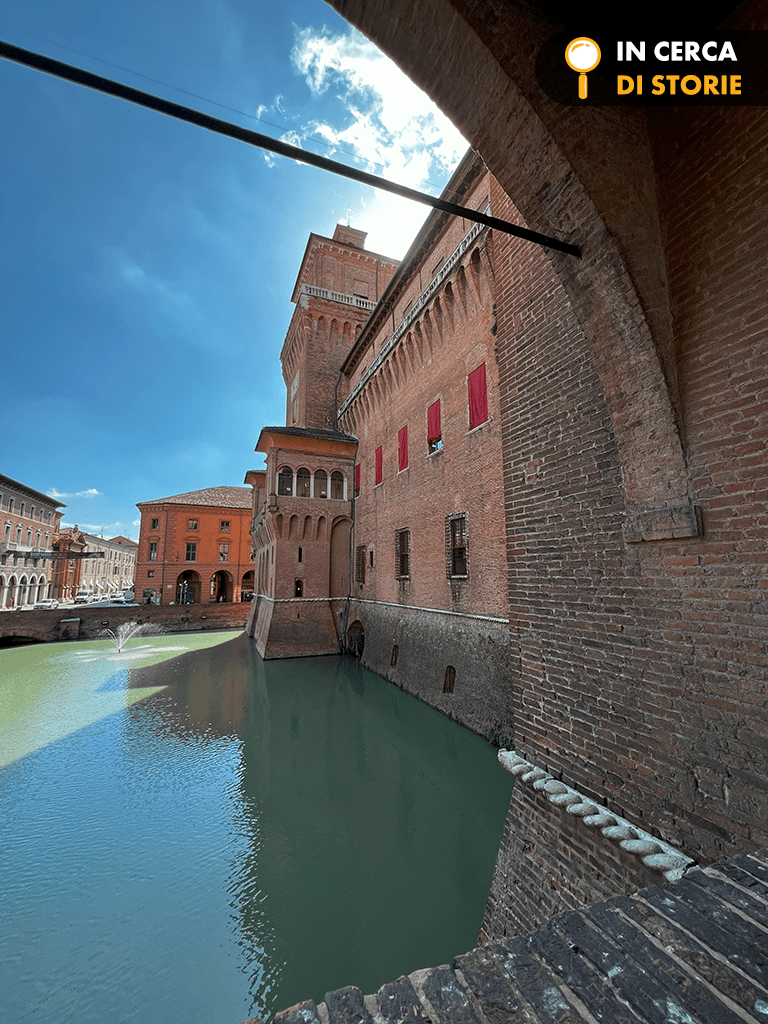 Rispetto ad altri castelli dislocati in luoghi sperduti e a volte fatiscenti o chiusi, quello di Ferrara si trova in città ed è possibile visitarlo. Tra guida e ricerche scopro che risale al XIV sec. Il 29 settembre del 1385, giorno di San Michele, il Marchese Nicolò II diede il via alla costruzione di una potente fortezza affidando i lavori all’ingegnere di corte Bartolino da Novara. Fu scelto il luogo dove sorgeva un’antica torre di avvistamento, la Torre dei Leoni, che verrà inglobata nella fortezza.