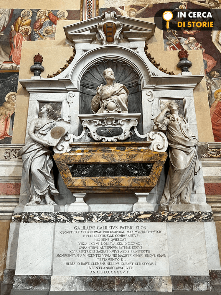 Negli ambienti ecclesiastici, infatti, c’erano ancora diversi oppositori che non gradivano l’idea di un monumento in Santa Croce dedicato ad un eretico. Ci vorrà un quasi secolo e finalmente, per volere del granduca Gian Gastone de’ Medici (1671-1737), viene realizzato un monumento funebre celebrativo nella navata sinistra della basilica.