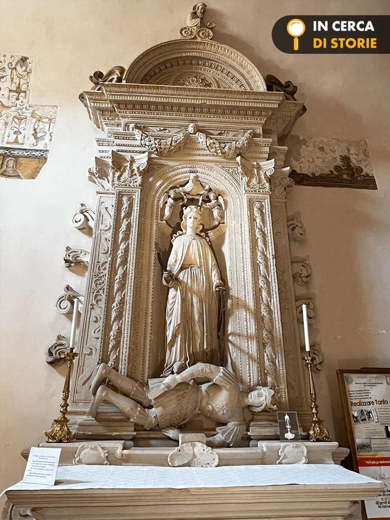 BASILICA DI SANTA CATERINA DI ALESSANDRIA Fu fatta realizzare da Raimondello Orsini del Balzo nel 1383. Sembra che nel 1391 fosse già completata. La leggenda dietro la sua realizzazione merita una menzione: Raimondello, di ritorno dalle crociate, si spinse sino alla sommità del Monte Sinai per rendere omaggio al corpo di santa Caterina. Baciando la mano della santa ne strappò un dito con i denti. Portò con sé la reliquia che, incastonata in un reliquiario d’argento, tuttora si conserva nel tesoro della chiesa.