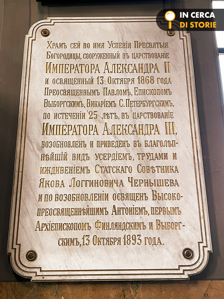 Fu proprio Alessandro II a volerla consacrare nel nome della Dormizione della Madre di Dio (da qui il nome – per Dormizione o dormitio in latino si intende nella Chiesa orientale il passaggio di Maria Vergine dalla vita terrena a quella celeste e corrisponde all’Assunzione nella Chiesa occidentale). L’allora parrocchia ortodossa di Helsinki, fondata nel 1827, aveva bisogno di una chiesa più grande data la crescente comunità di fedeli. Ci vollero 9 anni per costruirla e furono utilizzati i mattoni (circa 700.000) della fortezza di Bomarsund posta a difesa delle isole Åland in Finlandia e distrutta durante la guerra di Crimea (1853-1856).